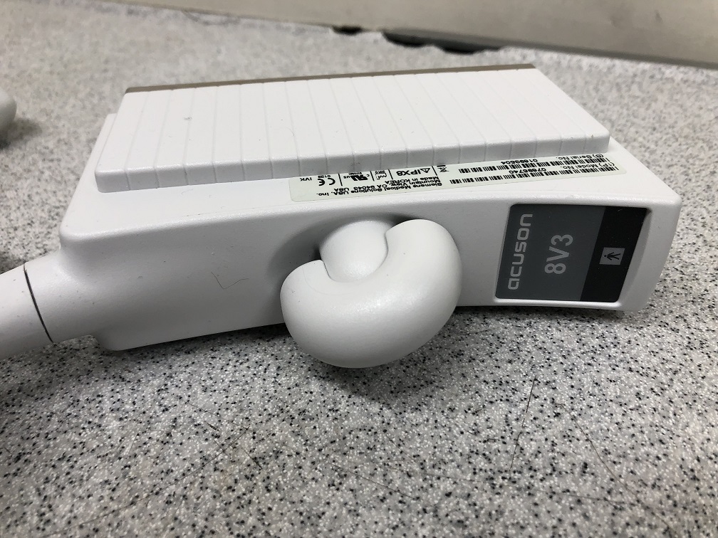 Acuson 8V3 probe has an operating frequency range of 3 to 8 MHz and runs on the Acuson S3000 ultrasound machine system. This vector imaging probe uses Hanafy lens technology and has a user-selectable multihertz setting. It used for the following applications: Fetal Echo, Neonatal Echo, Neonatal Head, Pediatric Abdomen and Pediatric Echo.