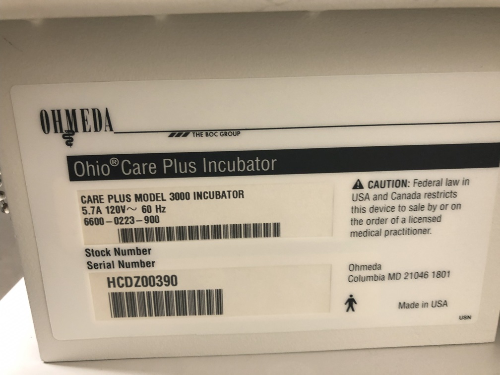 85534 - Ohio 3000 Care Plus Infant Incubator