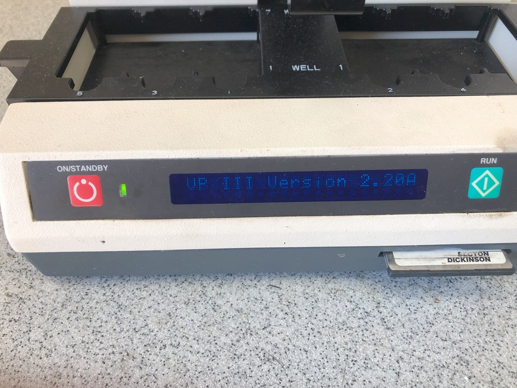 The BD MicroProbe Processor Cat# 211877 is used in the automated processing portion of the Affirm Microbial Identification Test procedure. It is a compact, robotic unit that automatically controls the reagent and sample mixing, and incubation timing. It is user-friendly and very simple to operate.