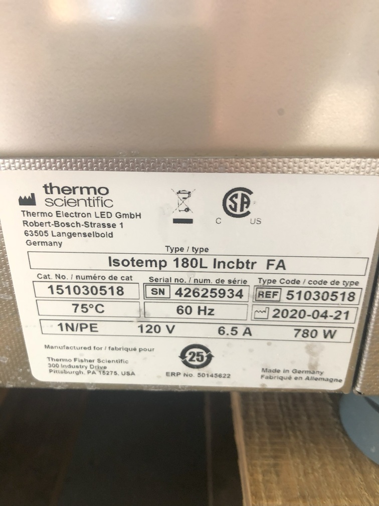 Thermo Scientific Fisher Brand 151030518 Isotemp 180L Incubator