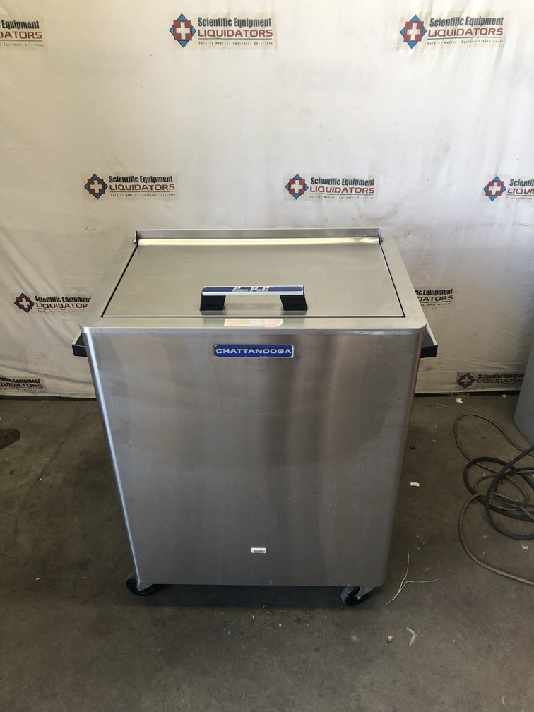 The C5 Cold Pack Chilling Unit by Chattanooga features fast chilling times and large capacity to keep up with the demands of a busy clinic. No plumbing required; plug into a standard electrical outlet and its ready to go. Stainless steel construction with rubber swivel casters for easy mobility. 33 H x 15.5 W x 27 D