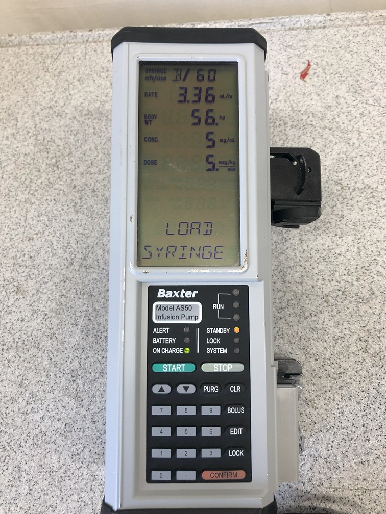 The Auto Syringe AS50 Infusion Pump is designed to meet the fluid and drug delivery requirements of today's changing clinical environment. It provides accurate, continuous or intermittent infusion of intravenous solutions, drug solutions, whole blood, and packed red blood cells. The pump is indicated for infusion via intravenous (IV), intra-arterial (IA), epidural, or subcutaneous routes of administration. It can be piggybacked into an ongoing infusion line to deliver secondary solutions automatically, precisely, and economically. Infusion rates are programmable from 0.01 to 438 mL/hr. The pump accepts standard disposable syringes from 1 mL to 60 mL in size. A numeric keypad simplifies programming and makes the pump easy to use. During programming, the status display prompts the user to enter data about the syringe and the infusion. While the pump is running, the status display shows information about the infusion. Safety and effectiveness are reinforced by pre-programmable bolus operation, titration of a dose without interruption of fluid flow, and easily understood alarm and alert messages.