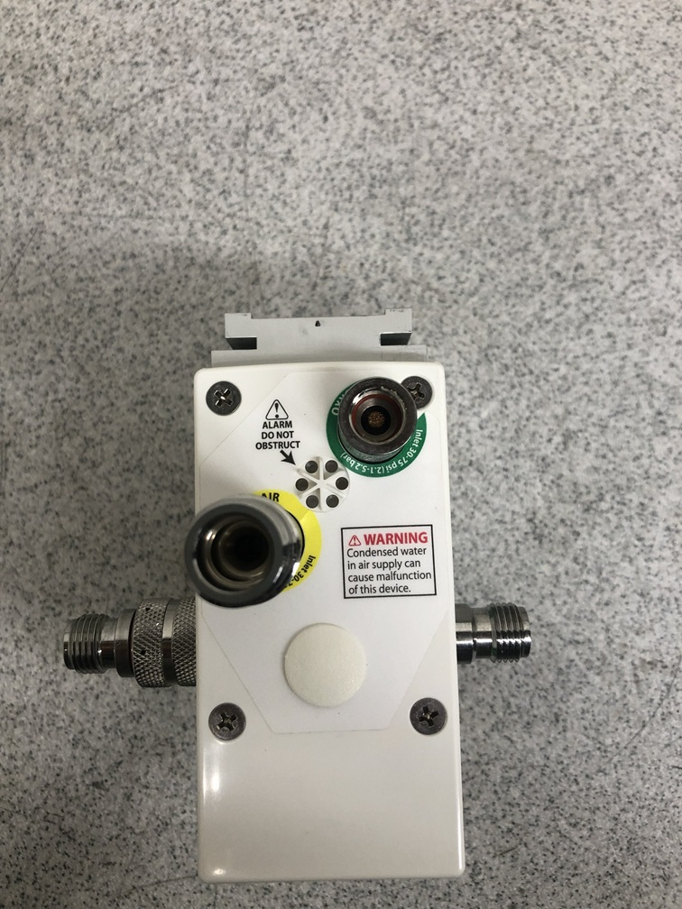 Dimensions: (without fittings) Depth: 4.92" (12.5 cm) Width: 2.25" (5.7 cm) Height: 4.10" (10.4 cm) Weight: 2.9 lbs (1.3 kg) Operating Temperature: 59F to 104F (15C to 40C) FiO2 Accuracy: +-3% of full scale Bypass Alarm Activation: 18-22 psi (1.2-1.5 bar) Primary Outlet Flow Range: 3-30 lpm Auxiliary Outlet Flow Range: 0-30 lpm Bleed Flow (at 50psi, 3.4 bar) 13 lpm or less Maximum Combined Flow (all outlets): = 30 lpm No. of Primary Outlet Ports: 1 No. of Auxiliary Outlet Ports: 1