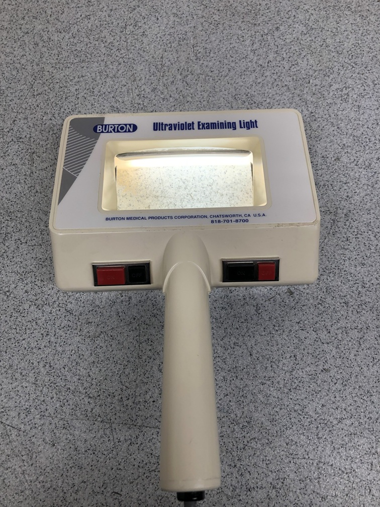 Burton UV Lights are universally accepted for diagnosing disease and injuries to the skin and eye, including detection of corneal scratches, foreign bodies in the eye, blocked tear ducts, fungus infections, Erythasma, Tinea Vesicolor, Vitiligo, Scabies and Microsporium Canis.