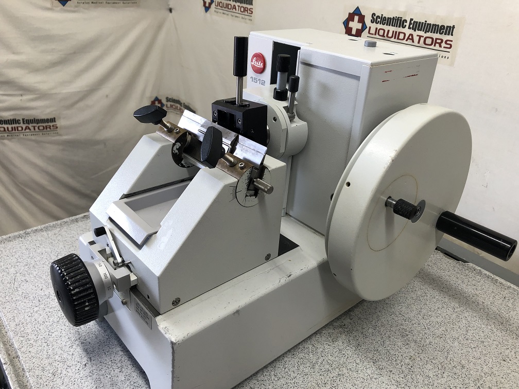 The Leitz 1512 Rotary Microtome is designed for the preparation of paraffin-embedded specimens in histology and pathology. The section thickness can be adjusted from 1um to 25um, including during the sectioning, and offers excellent uniform sections for routine work. Front controls allow rapid knife adjustment with lever lock and unlock. The Leitz 1512 provides highly accurate and reproducible sections.