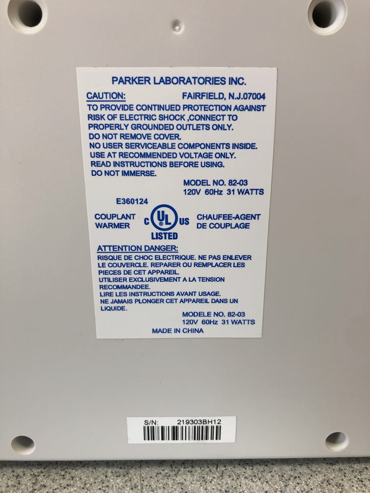 Parker Laboratories 82-03 Thermasonic 3 Bottle Gel Warmer