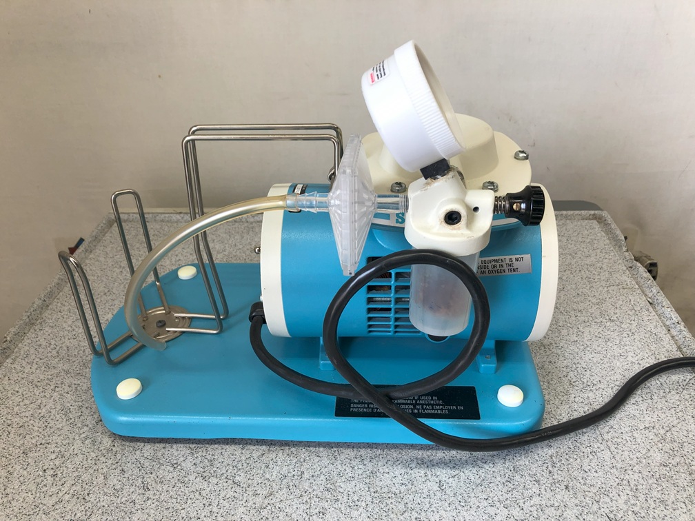 The Schuco Model 132 high volume aspirator and suction system is simple, portable and reliable. Designed to suit the needs of the uncompromising professional in the hospital, institution or physician's office, this durable unit has an ultra-strong lightweight casing and controlled vacuum regulation from 0-22'' Hg. Voltage is 115/60.