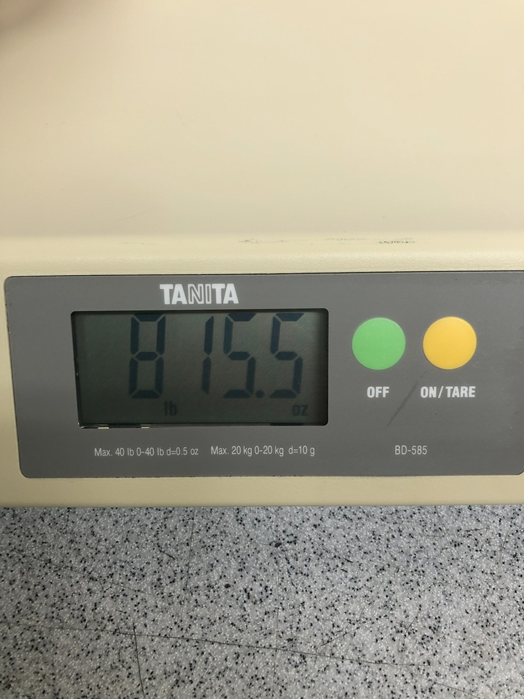 Body has yellowed due to fluorescent lighting Max 40 Pounds Features: *All-in-one design, no moving parts, very easy to clean *Weighs in pounds and kg *Battery powered for portability while saving space *Weighs only 6 pounds, easy to transport from room to room *Motion stop technology captures the weight of a moving infant
