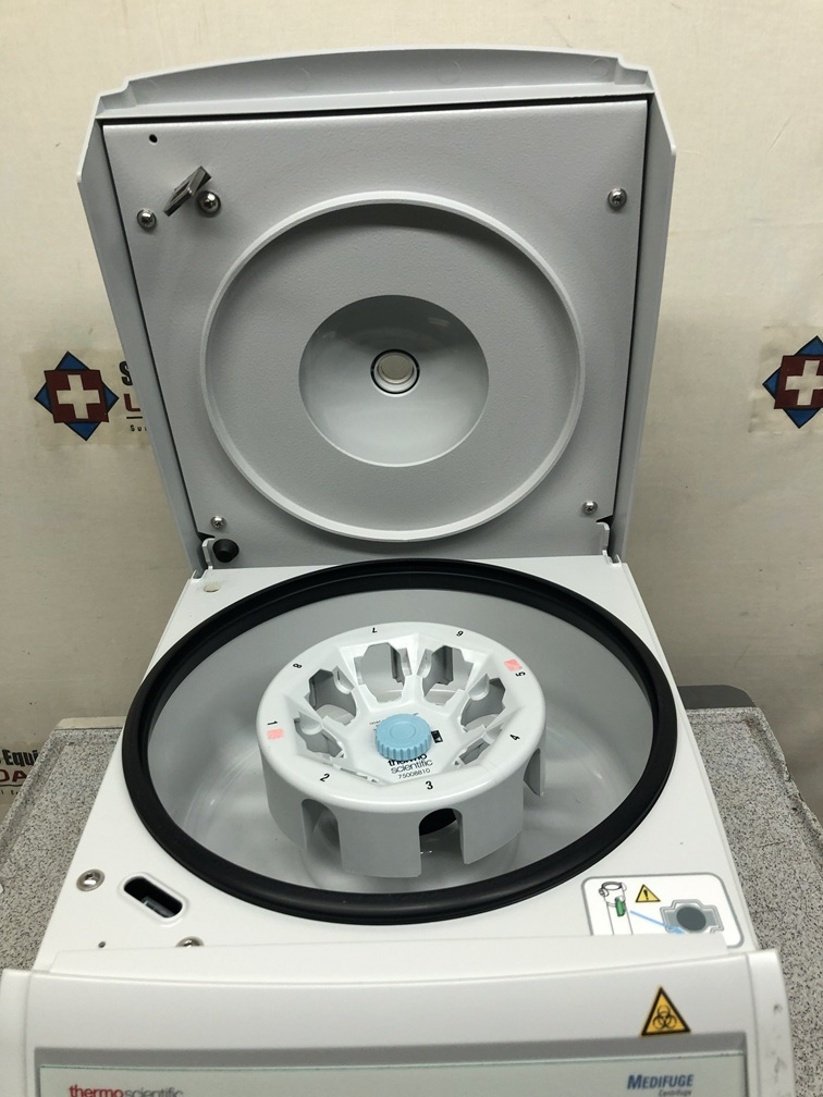 Perform both routine clinical and life science separations with the Thermo Scientific™ Medifuge™ small benchtop centrifuge. It fits in with its compact design and stands out with the unique Thermo Scientific™ DualSpin™ rotor featuring a 2-in-1 hybrid design.