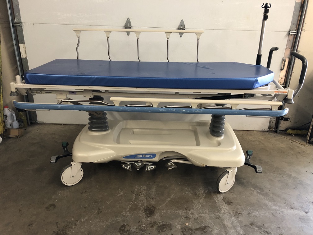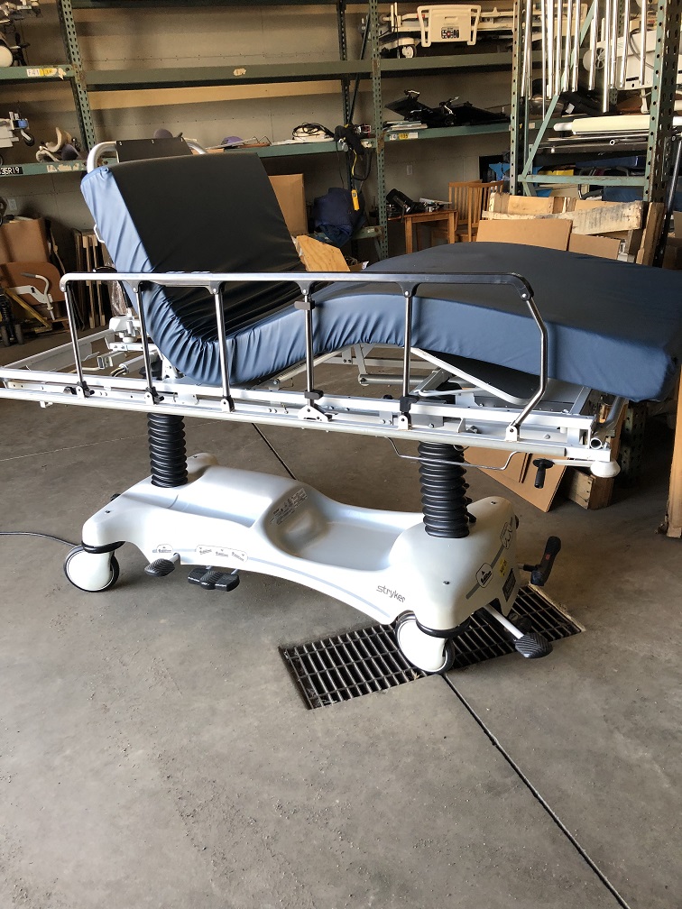 patient, transport, gurney, gurnies, casters, wheels, rolls, lock, locking, steer, hydraulic, rails, post, operation, operating, ophthalmic, chair, stryker, hausted, hill-rom, hill, rom, hillrom, oxygen, tank, mattress, pad,